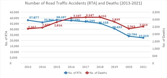 Figure 1: Number of road traffic accidents and deaths in Sri Lanka